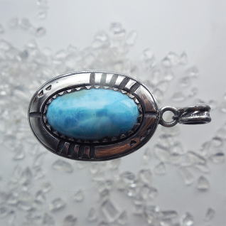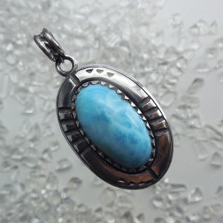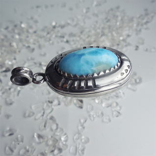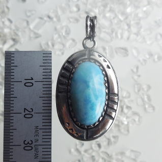 | Native Americanの方々が創るジュエリーには、トルコ石がよく使われます そこを、ラリマーにしてみた Ocean Tribe シリーズ 本体サイズ 29.0 x 20.0 x 9.7 (除くバチカン長) 18.0g |