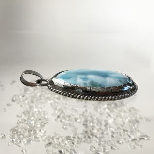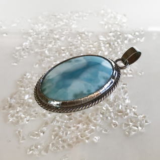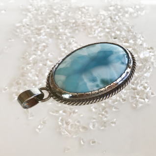| Native Americanの方々が創るジュエリーには、トルコ石がよく使われます そこを、ラリマーにしてみた Ocean Tribe シリーズ 真ん中に、しっかり水色が載った、大きなラリマーで おっきなペンダントヘッドを造りました 目立つことこの上なし 本体サイズ 51.0 x 36.8 x 9.0 mm 38.0g |