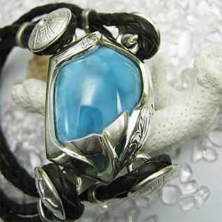 | ガツンとラリマー ガツンとブルー 無双ブレスレット 革紐で長さを調整します |