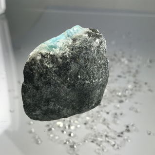 | 爽やかな水色と 母岩の間の石英の城がいい感じ |