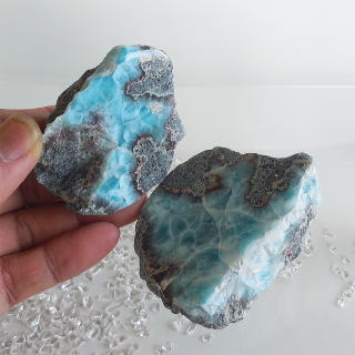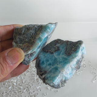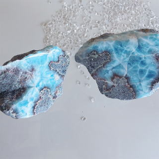 | 廻りの岩石に、ほんのり赤 模様の緻密さが凄い ぱっかんラリマー 2個 セット |