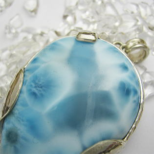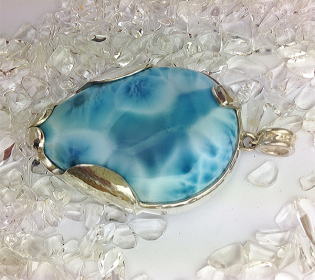 | 青が濃い、模様があり、中央には透明なところが海溝のようにはしる、生命力みなぎるラリマー イルカや人魚のようなかわいいモチーフは合わない感じ ちょっと、抽象的に仕上げました 本体部分 41.5mm x 30.0mm x9.4 大きめです ラリマー・ランド・クラブ会員は¥4,000引き |