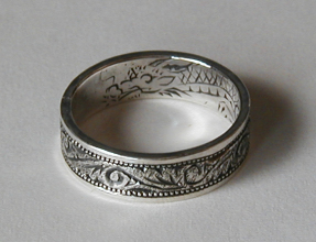天に駆け昇るその瞬間の力をたくわえたパワフルな龍が棲んでいます。 海外留学生や海外赴任者、スポーツ選手に好まれている作品です。 SILVER925 幅:6mm前後 厚み:1.4mm前後 サイズ: No.10〜 No.21 指輪の写真をクリックすると、それぞれのシリーズの作品が見られます。 龍の母が子を思うような慈しみの表情を見せる龍が棲んでいます。 細身の指輪なので、女性にも、美しく、優しくつけていただけます。 SILVER925 幅:4mm前後 厚み:1.2mm前後 サイズ: No.9〜No.21 指輪の写真をクリックすると、それぞれのシリーズの作品が見られます。